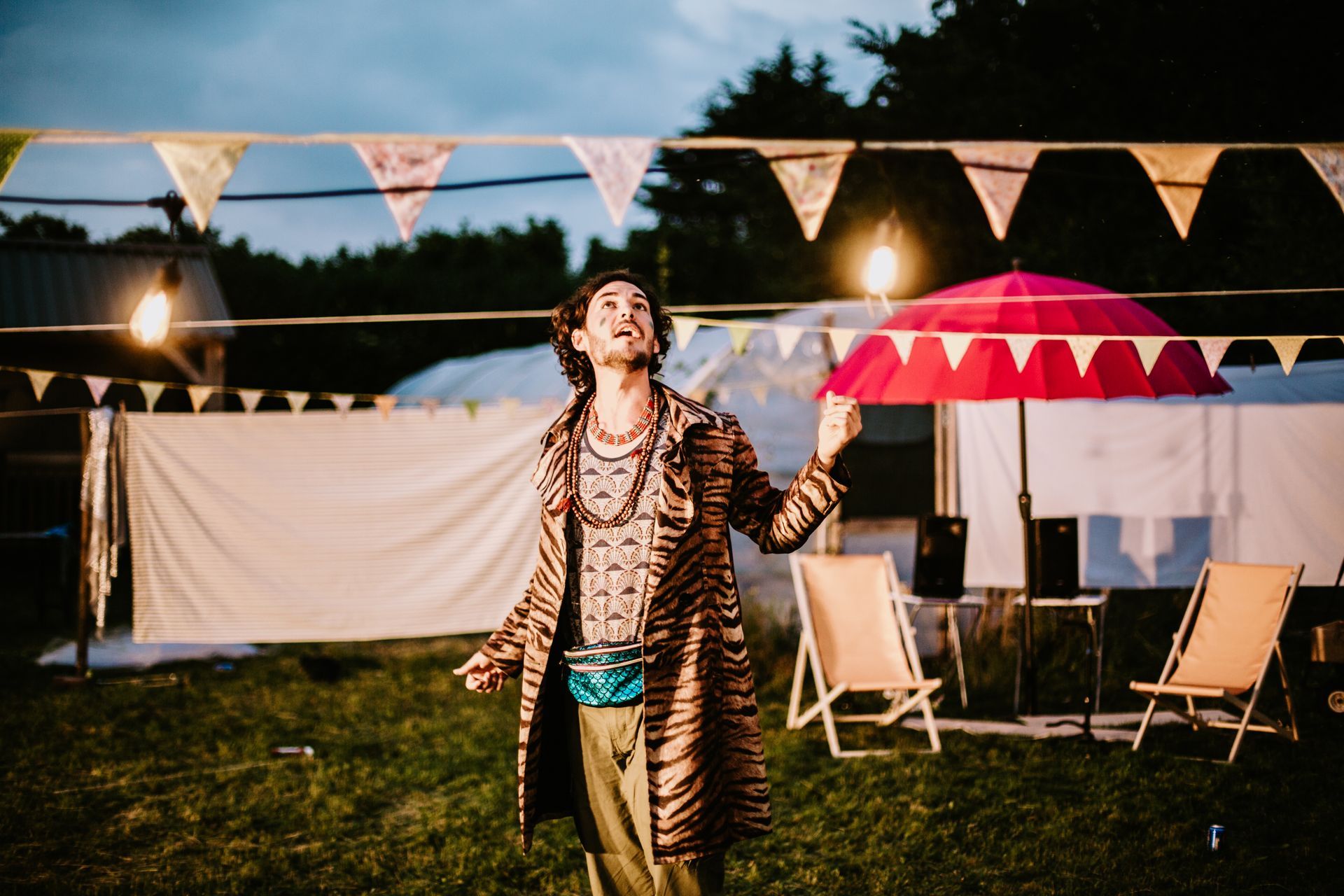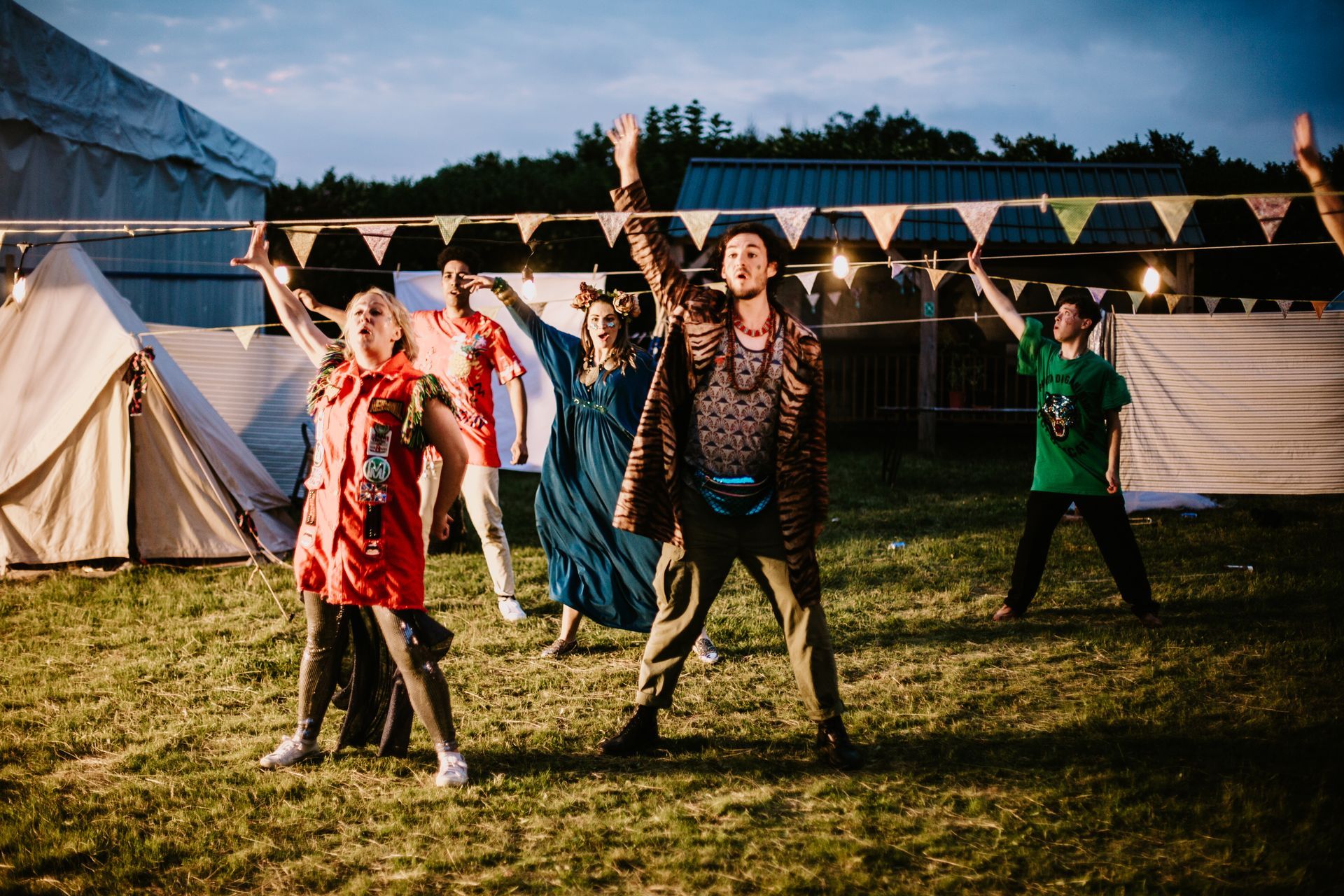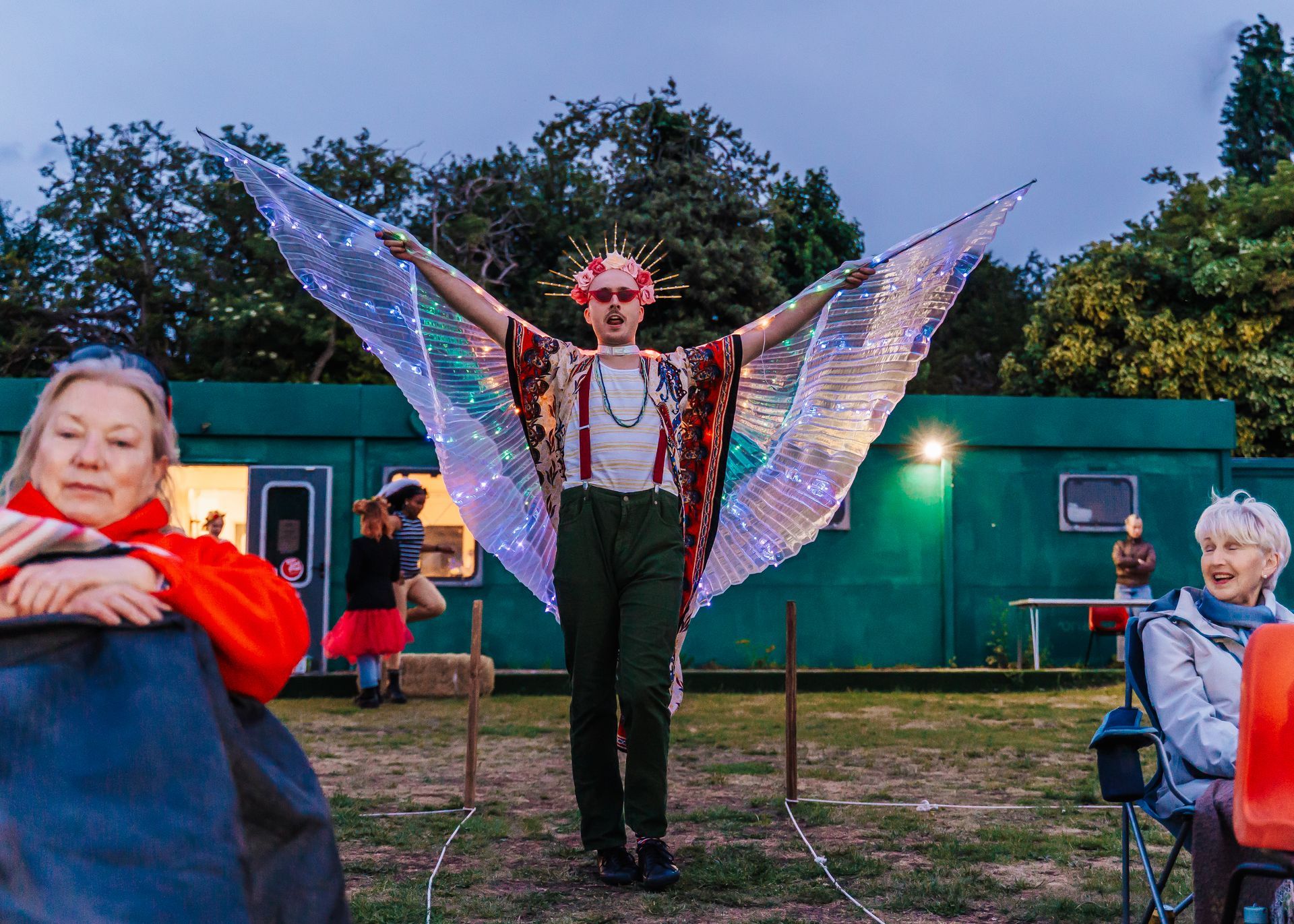 The space is an old bowling green without cover. The surface is grass and whilst well drained, is likely to be damp after the weather we have had recently. Please bring your own picnic chair/rug for the performance. If you wish you can bring your own food and drink - we are unable to provide a bar for this event.
