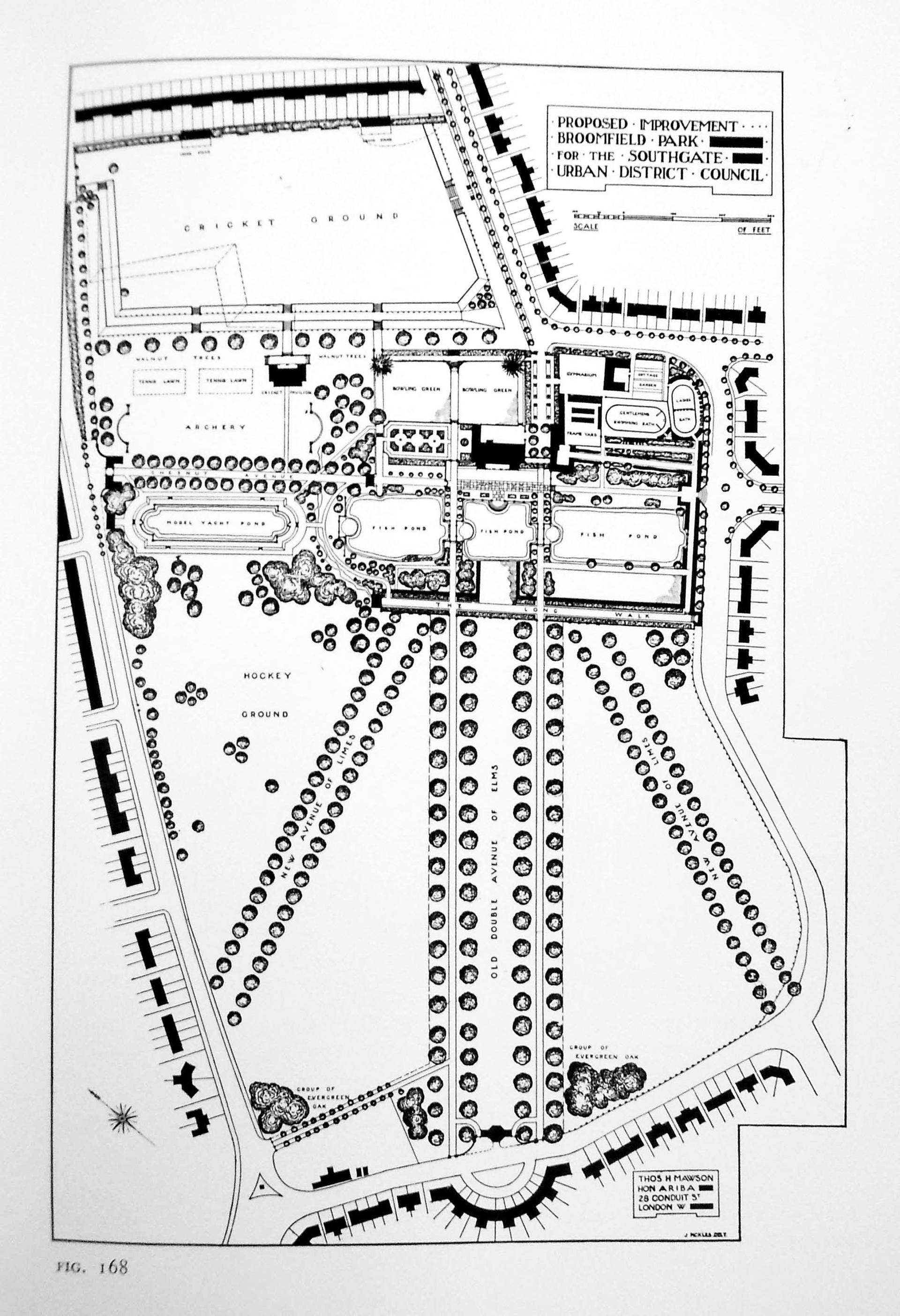 The council continued to invest in the park, providing drainage in 1907, and laying out sports facilities for cricket, tennis and football in 1908. By 1910, a dedicated boating pond was built on the northern edge of the park. Mawson himself was retained by SUDC as an advisor on the layout of Grovelands Park purchased in 1911. Throughout the 1920s both Borough Surveyor Mr. R Phillips and Chair of the Parks Committee Cllr John Joy were ambitious to develop the park further.