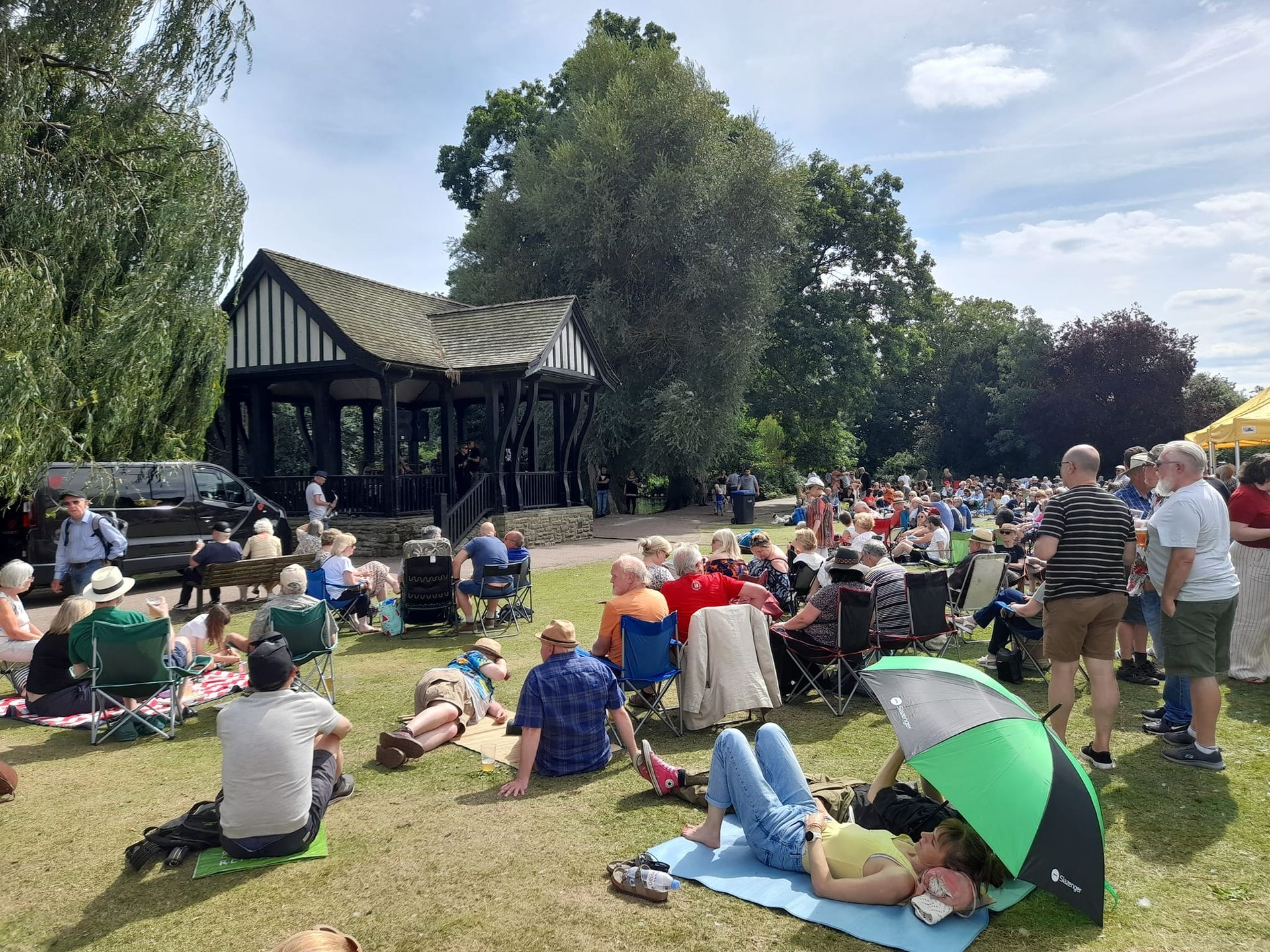As part of the celebrations, an actress dressed as Elizabeth I was rowed across the lake in a “royal barge” overlooked by the bandstand.