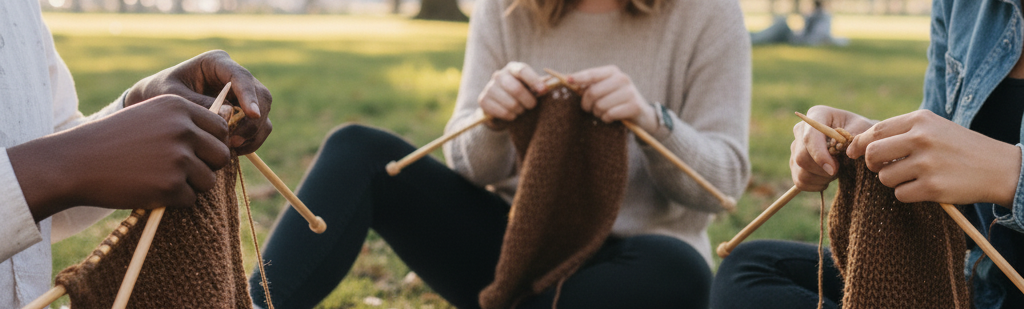 You are invited to the clubhouse next to the former bowling green (near the tennis courts) with a pair of 4mm needles and any spare oddments of brown and white DK yarn.