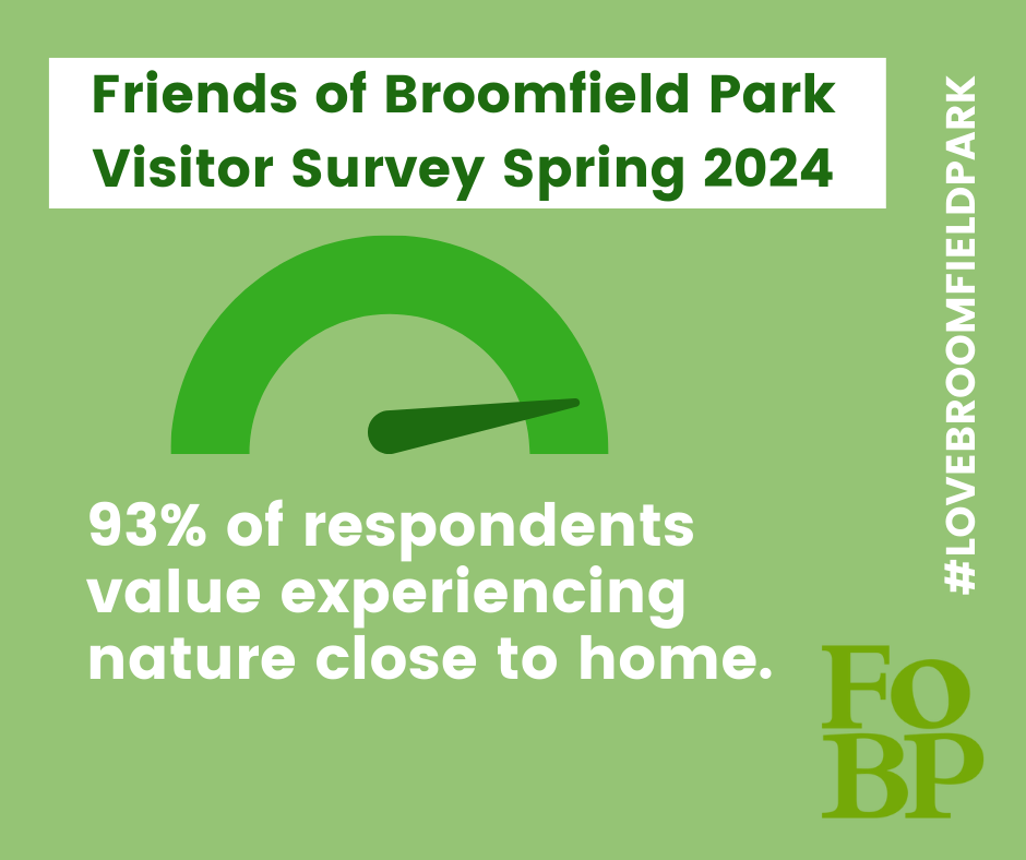 Commenting on the results Co-Chair of the Friends Group Finula Cilliers said “Our survey was conducted to help determine the future priorities and activities of the Friends of Broomfield Park. It was important for us to invite park visitors and local community members to voice their opinions on what they like about the park... and what might be improved. So, we were delighted to find out how highly the park is valued as a place to engage with the natural world – but also a space to connect with neighbours and be part of a local community. It is heartwarming that the considerable volunteer effort over recent years has been recognised and appreciated.